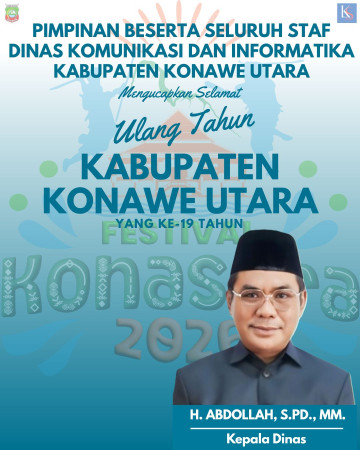 Pimpinan beserta seluruh staf Dinas Komunikasi dan Informatika Kabupaten Konawe Utara mengucapkan selamat Hari Ulang Tahun (HUT) Kabupaten Konawe Utara yang ke-19 Tahun 2026.