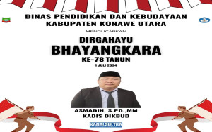 Ucapan Dirgahayu Bhayangkara Ke-78 Tahun Oleh Dinas Pendidikan dan Kebudayaan Kabupaten Konawe Utara