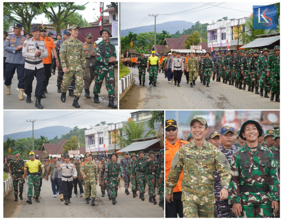 Kanalsultra.com, Konawe Utara – Peringati Hari Ulang Tahun (HUT) Republik Indonesia (RI) yang ke-80 Tahun, Kodim 1430/Konawe Utara (Konut) bersama Pemerintah Dearah (Pemda) Konut gelar Long March perdana sejauh tujuh kilometer dari titik kumpul hingga berakhir di Kantor Bupati Konut, Jum’at (15/08/2025). Ratusan peserta turut berpartisipasi dalam kegiatan ini mulai dari jajaran TNI AL, Polres, Badan Kesbangpol, Dinas Komunikasi dan Informatika, Dinas Ketahanan Pangan, Dinas Pemuda dan Olahraga, Dinas Perhubungan, Dinas Perikanan, Damkar, BPBD, Basarnas, hingga para pelajar. Dalam sambutannya, Bupati Konut, Ikbar, mengatakan kegiatan ini merupakan bagian dari peringatan Hari Ulang Tahun (HUT) Republik Indonesia (RI) yang ke-80 tahun, bukan sekedar olahraga fisik melainkan sarana mempererat persatuan, melatih disiplin, dan menumbuhkan semangat cinta tanah air. Tidak lupa, Ikbar juga memberi motivasi khusus kepada generasi muda. “Kegiatan ini masih dalam suasana menjelang Hari Kemerdekaan Republik Indonesia, dan disini kita semua tidak hanya datang untuk berolahraga, tetapi saling bersilaturahmi, kita eratkan persatuan, latih kedisiplinan kita. Disamping itu, saya juga berharap 5 atau 10 tahun kedepan akan lahir pemimpin-pemimpin baru di Konawe Utara yang punya integritas dan semangat juang untuk membangun daerah dan generasi muda harus siap menjadi penerus perjuangan, semangat 45 harus terus hidup didada kalian,” ungkapnya. Di momen ini, Ia juga memaparkan perihal upaya meningkatkan ketahanan pangan khususnya diwilayah Konut. “Pemerintah daerah telah mengucurkan sekitar Rp 8 miliar untuk mendukung sektor perkebunan dan ketahanan pangan. Keberhasilan ini adalah milik kita semua, baik petani, masyarakat, maupun pemerintah. Semangat kebersamaan seperti ini menjadi modal penting untuk membangun Konawe Utara yang lebih maju dan sejahtera,” ujarnya. Saat sebelum kegiatan berakhir, Dandim 1430/Konut, Letkol Arh. Pramono, sangat mengapresiasi antusias para peserta. Ia mengatakan kegiatan ini murni untuk menyukseskan peringatan HUT RI ke-80 tahun serta mempererat kebersamaan antara TNI, Pemerintah, dan Masyarakat. “Alhamdulillah, kegiatan Long March ini berjalan aman dan lancar dari awal hingga akhir. Kami sangat bangga, dan ke depan berharap dapat terus berkolaborasi dengan pemerintah daerah dan seluruh jajaran demi mempererat sinergi,” ujar Dandim. Jurnalis : Wulan Editor : Risci Paktikasari