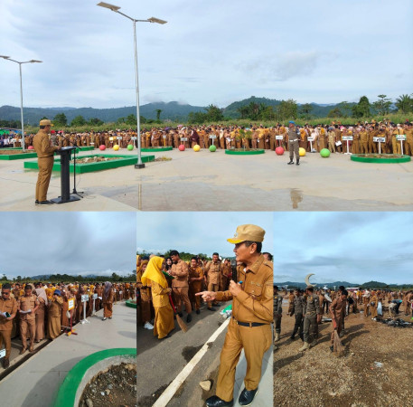 Kanalsultra.com, Konawe Utara – Usai menggelar Festival Konasara Hari Ulang Tahun (HUT) Konawe Utara (Konut) yang ke-19 tahun, Bupati (Konut), Ikbar, melalui Wakilnya, Abu Haera, menggelar apel gabungan di lingkup Pemerintah Daerah (Pemda) Kabupaten Konut yang berlangsung di Bundaran Central Budaya Daerah (CBD) Konasara, Senin, (05/02/2026). Dalam kesempatan ini, Wabup Konut mengevaluasi tingkat kehadiran dan kedisiplinan para PNS, P3K, dan P3K PW lingkup Pemda Konut. Abu Haera juga mengajak semua ASN yang hadir untuk bersama-sama melakukan aksi bersih-bersih dilokasi eks pelaksanaan Festival Konasara. “Tolong disiapkan barisan khusus bagi PNS juga P3K dan Paruh Waktu yang telat apel kemudian videokan agar menjadi perhatian dan motivasi bagi ASN untuk lebih meningkatkan kedisiplinan. Kami akan terus melakukan pengawasan, jika ada PNS khususnya P3K dan Paruh Waktu yang kerjanya itu sistem kontrak, jika tidak disiplin dan tidak melaksanakan tugas maka pemerintah daerah akan melakukan pemutusan kontrak. Ingat!, masih ada ribuan calon P3K Paruh Waktu yang menunggu kesempatan dilantik. Untuk itu, kalian yang sudah diberi kesempatan tolong dimanfaatkan sebaik-baiknya!,” ujar Wabup Konut, Abu Haera. Kegiatan ini merupakan agenda rutin Pemda Konut pasca acara besar di mana para ASN melakukan apel perdana atau apel gabungan yang kemudian dilanjutkan kegiatan pembersihan area publik untuk memulihkan keindahan daerah serta menunjukkan tingkat kepedulian Pemda terhadap lingkungan. Jurnalis : Wulan Editor : Risci Paktikasari