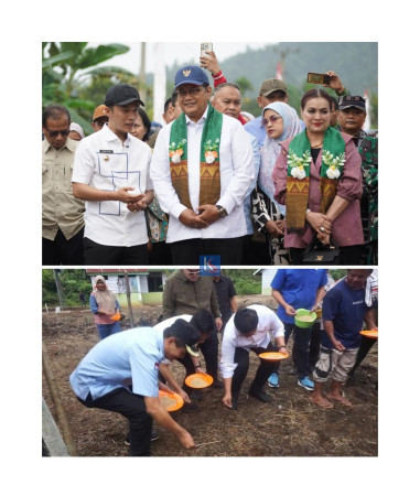 Kanalsultra.com, Konawe Utara – Bupati Konawe Utara (Konut), Ikbar, didampingi wakilnya, Abuhaera, bersama Wakil Menteri (Wamen) Transmigrasi, Viva Yoga Mauladi, menanam padi jenis pogo di lahan pertanian Kawasan Transmigrasi Hialu, Desa Sambandete, Kecamatan Oheo, Konut, Minggu (03/08/2025). Wamen dan rombongan membuat lubang-lubang kecil di tanah dengan menggunakan tongkat kayu yang kemudian menaburkan benih padi pogo. Momen itu berlangsung penuh semangat dan keakraban antara pejabat pemerintah dan warga transmigran. Saat peninjauan lahan perkebunan warga, Bupati Konut, Ikbar, menyampaikan pemerintah terus berupaya mendorong kemandirian warga. Salah satunya menjamin akses sarana pertanian secara gratis. "Jadi tidak ada keluhan masyarakat kita lagi mengenai persoalan pupuk, maupun bibit, semua kita gratiskan," ujarnya. Selain menanam padi, rombongan juga meninjau peningkatan jalan di kawasan transmigrasi serta memantau kualitas air. Agendanya, sepanjang dua kilometer akan dilakukan peningkatan jalan lapis penetrasi di Kawasan Transmigrasi Mandiri (KTM) Hialu, lalu satu kilometer pembangunan saluran samping jalan, kemudian tiga kilometer akan ditingkatkan jalan di SP Puhialu, serta 0,87 kilometer akan dibangun saluran samping. Kegiatan ini diakhiri dengan penyerahan secara simbolis dana bantuan oleh Wamen Transmigrasi, Viva Yoga Mauladi, kepada Bupati Konawe Utara, Ikbar. Jurnalis : Wulan Editor : Risci Paktikasari
