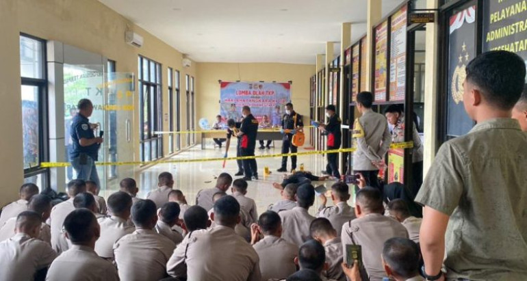 Kanalsultra.com, Konawe Utara - Dalam rangka memperingati hari ulang tahun (HUT) Bhayangkara ke-78 tahun, Kepolisian Resor (Polres) Konawe Utara mengadakan berbagai macam kegiatan. Seperti menggelar perlombaan olahraga dan perlombaan ceramah. Sebelumnya telah diadakan perlombaan olahraga menembak antar satuan kerja Polres Konawe Utara yang berlangsung di lapangan tembak Tantya Sudhirajati Polres Konawe Utara pada Senin 3 Juni 2024 dan perlombaan ceramah Kamtibmas yang bertempat di Aula Sanika Satyawada Mako Polres Konawe utara pada Rabu 5 Juni 2024. Kali ini Polres Konawe Utara menyelenggarakan lomba olah tempat kejadian perkara (TKP). Kegiatan perlombaan olah TKP yang digelar pada Rabu 12 Juni 2024 ini dibuka langsung oleh Kapolres Konawe Utara, AKBP Priyo Utomo, S.H., S.I.K, di ruang Sentra Pelayanan Kepolisian (SPK) Mapolres Konawe Utara. Pembukaan lomba dihadiri oleh Wakapolres Kompol Urva Lomansyah, S.Si., S.I.K., M.H, Pejabat Utama (PJU) Polres Konawe Utara, Personel Polres, Polsek serta Siswa Latja Diktuk Ba SPN Polda Sultra. Sebanyak 10 tim turut berpartisipasi dalam lomba olah TKP ini yaitu Tim Polsek Wiwirano, Tim Polsek Asera, Tim Polsek Lasolo, Tim Polsek Sawa, Tim Gabungan Staf, Tim Satuan Binmas, Tim Satuan Sabhara, Tim Satresnarkoba, Tim Satlantas dan Tim Sat Reskrim. Dalam sambutannya, Kapolres Konawe Utara, AKBP Priyo Utomo, S.H., S.I.K., menegaskan bahwa lomba olah TKP ini merupakan yang kedua kali diadakan secara konsisten untuk memeriahkan Hari Bhayangkara. “Dalam rangka HUT Bhayangkara, kita telah mengadakan berbagai perlombaan olahraga dan ceramah baik internal maupun bersama masyarakat. Hari ini, kita adakan lomba olah TKP untuk melatih, mengingat kembali, dan belajar hal dasar yang harus diketahui semua anggota Polri tanpa terkecuali,” ungkap Kapolres Konawe Utara. Ia juga mengingatkan kepada peserta untuk melaksanakan kegiatan ini dengan serius dan sesuai prosedur dari awal hingga akhir. “Laksanakan dengan baik, serius, dan sesuai prosedur dari awal hingga akhir dalam melakukan olah TKP. Di sini ada adik-adik kita, para siswa Latja SPN Polda Sultra. Mari beri contoh dan edukasi yang baik kepada generasi penerus kita agar paham dan mumpuni apabila menemukan tindak pidana yang memerlukan tindakan olah TKP,” tutup Kapolres Konawe Utara. (P) Editor : Risci Paktikasari