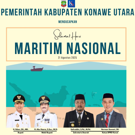 Pemerintah Kabupaten Konawe Utara (Konut) mengucapkan selamat memperingati Hari Maritim Nasional, Kamis (21/08/2025).