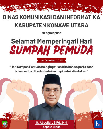 Pimpinan beserta seluruh staf Dinas Komunikasi dan Informatika (Diskominfo) Kabupaten Konawe Utara (Konut) mengucapkan selamat memperingati Hari Sumpah Pemuda, Selasa (28/10/2025).