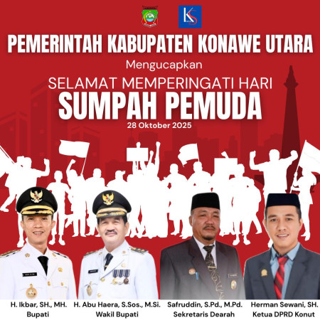 Pemerintah Kabupaten (Pemkab) Konawe Utara (Konut) mengucapkan selamat memperingati Hari Sumpah Pemuda, Selasa (28/10/2025).