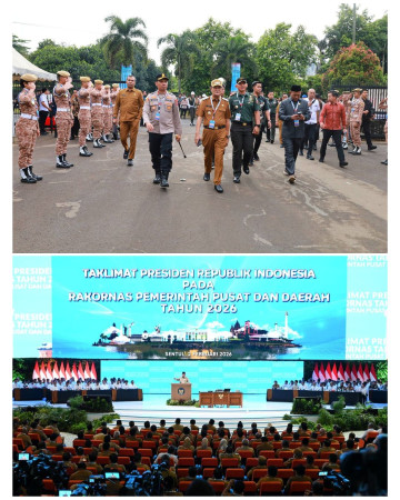 Kanalsultra.com, Bogor – Mewakili Bupati Konawe Utara (Konut), Ikbar, Wakil Bupati (Wabup) Konut, Abuhaera, didampingi Dandim 1430, Kapolres Konut, serta Wakil Ketua DPRD I Konut, Made Tarubuana, mengikuti Rapat Koordinasi Nasional (Rakornas) Pemerintah Pusat dan Daerah tahun 2026 yang diselenggarakan Kementerian Dalam Negeri (Kemendagri) dan dibuka langsung Presiden Republik Indonesia, Prabowo Subianto, di Sentul Internasional Convention Center (SICC), Kabupaten Bogor, Jawa Barat, Senin, (02/02/2026). Rakornas tahun ini dihadiri oleh sekitar 4.487 peserta yang terdiri dari unsur pimpinan kementerian/lembaga, gubernur, bupati, dan wali kota, pimpinan DPRD, serta unsur Forkopimda di seluruh Indonesia. Kepala Pusat Penerangan (Kapuspen) Kemendagri, Benni Irwan, dalam keterangannya mengatakan bahwa Rakornas Tahun 2026 bertujuan memberikan arahan kepada seluruh kepala daerah bersama unsur Forkopimda dan pemangku kepentingan lainnya sebagai upaya dalam memperkuat sinergi antara pemerintah pusat dan daerah. Hal ini terutama untuk mendukung implementasi program prioritas Presiden menuju Indonesia Emas 2045. “Mempercepat tercapainya keberhasilan program prioritas Presiden untuk mewujudkan kedaulatan pangan dan energi, serta ekonomi yang produktif dan inklusif dengan pencapaian target pertumbuhan ekonomi 8 persen", ujarnya. Dalam sambutannya, Presiden Prabowo memberikan arahan kepada para peserta Rakornas menyampaikan catatan evaluasi kinerja pemerintah selama tahun 2025. Arahan tersebut sekaligus berisi strategi dalam menyongsong kinerja tahun 2026 agar lebih baik. Ia menjelaskan bahwa kepala daerah dan Forkopimda berperan penting dalam memastikan keberhasilan pencapaian target program prioritas Presiden. Mereka merupakan motor utama penggerak penyelenggaraan pemerintahan, pemberdayaan masyarakat, dan pembangunan di daerah. Karena itu, Rakornas menjadi sarana untuk membangun kesamaan pemahaman, memperkuat koordinasi, serta menyinergikan langkah kebijakan pusat dan daerah. “Keberhasilan program prioritas nasional sangat ditentukan oleh soliditas dan sinergi antara pemerintah pusat dan daerah,” tegas Presiden Prabowo dalam arahannya. Dalam forum tersebut, Kemendagri menghadirkan jajaran Kabinet Merah Putih, mulai dari menteri koordinator, menteri, hingga pimpinan lembaga negara, termasuk unsur TNI dan Polri, sebagai narasumber yang terbagi dalam beberapa sesi tematik. Setiap sesi membahas berbagai topik, seperti sinergi kebijakan ekonomi dan energi, kedaulatan pangan berkelanjutan serta isu strategis lainnya. Redaksi