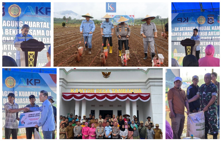 Kanalsultra.com, Konawe Utara – Sejalan dengan program Asta Cita Presiden Republik Indonesia (RI), Prabowo Subianto, Pemerintah Daerah (Pemda) Kabupaten Konawe Utara (Konut) bersama Polda Sulawesi Tenggara (Sultra) ikut serta dalam kegiatan penanaman jagung kuartal III yang diselenggarakan oleh PT. Adhi Kartiko Pratama bagi masyarakat lingkar tambang sebagai sinergi dalam mendukung peningkatan kesejahteraan masyarakat melalui sektor pertanian, bertempat di Desa Tambakua, Kecamatan Landawe, Konut, Sabtu (09/08/25). Kegiatan ini dihadiri Bupati Konut, Ikbar, Kepala Kepolisian Daerah (Kapolda) Sultra, Didik Agung Widjanarko, Wakapolda, Amur Chandra Juli Buana, Fahrizal, mewakili Dandim 1430 Kasdim Konut, Umar Sachruna, Ketua Bhayangkari Daerah, Yani DA Widjanarko, Ketua Bhayangkari Cabang Konut, Esi Rico Fernanda, Pejabat Utama Polda (PJU) Sultra, Ketua DPRD Konut, Kapolres Konut, Ketua Kejaksaan, para Organisasi Perangkat Daerah (OPD), para Kepala Desa (Kades), Camat Landawe, serta Camat Langgikima. Bupati Konut, Ikbar, dalam sambutannya menyampaikan apresiasi yang tinggi atas dukungan Polda Sultra dalam pengembangan pertanian di Konut. Selain mendukung program ketahanan pangan nasional, Ia berharap kegiatan penanaman jagung dengan luas lahan garapan mencapai 126 hektare ini dapat menjadi motor penggerak ekonomi masyarakat, terutama di pedesaan khususnya di wilayah Konut. “Hari ini kita menanam jagung di lahan masyarakat seluas 162 hektare. Ini bukan hanya kegiatan pertanian biasa, tetapi simbol kerja sama yang solid antara Pemerintah Daerah dan Polda Sultra demi terwujudnya kesejahteraan masyarakat. Semoga langkah ini membawa manfaat besar bagi petani. Kita upayakan agar hasil panen nantinya akan diarahkan tidak hanya untuk memenuhi kebutuhan lokal, tetapi juga untuk membuka peluang pasar yang lebih luas. Kegiatan seperti ini tentunya menjadi inspirasi untuk terus membangun daerah,” ujarnya. Ikbar menegaskan bahwa sektor pertanian memegang peranan penting dalam pembangunan ekonomi daerah. Tak lupa, Ia juga menyampaikan langkah strategis yang telah diambil pemerintah untuk mendukung para petani. “Sektor pertanian merupakan penyumbang terbesar PDRB Kabupaten Konawe Utara. Dari 81.355 jiwa masyarakat, hampir 40 persen di antaranya bekerja di sektor ini. Untuk itu, pertanian harus dikelola dengan manajemen yang baik, dan diprioritaskan untuk memberikan hasil maksimal bagi Masyarakat. Sebelumnya kami telah menyediakan pupuk NPK dan urea, benih jagung dan padi, kapur pertanian, pestisida dan herbisida, alat dan mesin pertanian (alsintan), serta berbagai sarana produksi lainnya. Bantuan ini diprioritaskan bagi 381 kelompok tani pangan yang beranggotakan 7.446 petani terdaftar di Sistem Informasi Manajemen Penyuluhan Pertanian (Simluhtan) Konut,” ujarnya. Selain itu, Bupati mengungkapkan bahwa pemerintah daerah tengah mengupayakan peningkatan infrastruktur pendukung produksi pertanian, khususnya akses jalan menuju Desa Tambakua yang menghubungkan beberapa desa lain di Kecamatan Landawe. “Melalui program Instruksi Presiden Jalan Daerah (IJD), kami selaku Pemerintah Daerah tengah berupaya agar jalan sepanjang tiga kilometer ke Tambakua dapat diaspal pada tahun ini, setelah memperoleh persetujuan dari pemerintah pusat,” ungkapnya. Mengakhiri sambutannya, Ikbar, menyampaikan apresiasi dan terima kasih kepada Kapolda Sultra beserta jajaran serta pihak-pihak terkait atas kunjungan dan dukungan bagi kemajuan pertanian di Konawe Utara. “Atas nama pemerintah daerah dan masyarakat, kami mengucapkan terima kasih atas kehadiran Bapak Kapolda Sultra bersama rombongan dan perwakilan dari PT. Adhi Kartiko Pratama, Kehadiran ini membawa pencerahan, harapan, dukungan, dan sinergi positif bagi Konawe Utara,” tutup Bupati Konut, Ikbar. Kegiatan ini diakhiri dengan penyerahan bantuan secara simbolis seperti mesin pengering jagung, mesin pencacah jagung, beberapa alat tanam, serta benih jagung dan pupuk kepada kelompok tani. Jurnalis : Wulan Editor : Risci Paktikasari